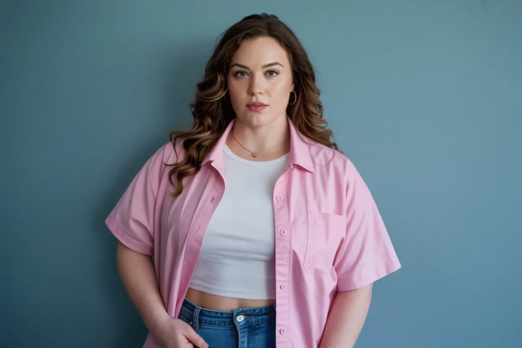 - Focus on fit, not just size: Choose tailored or semi-fitted garments instead of overly baggy options.